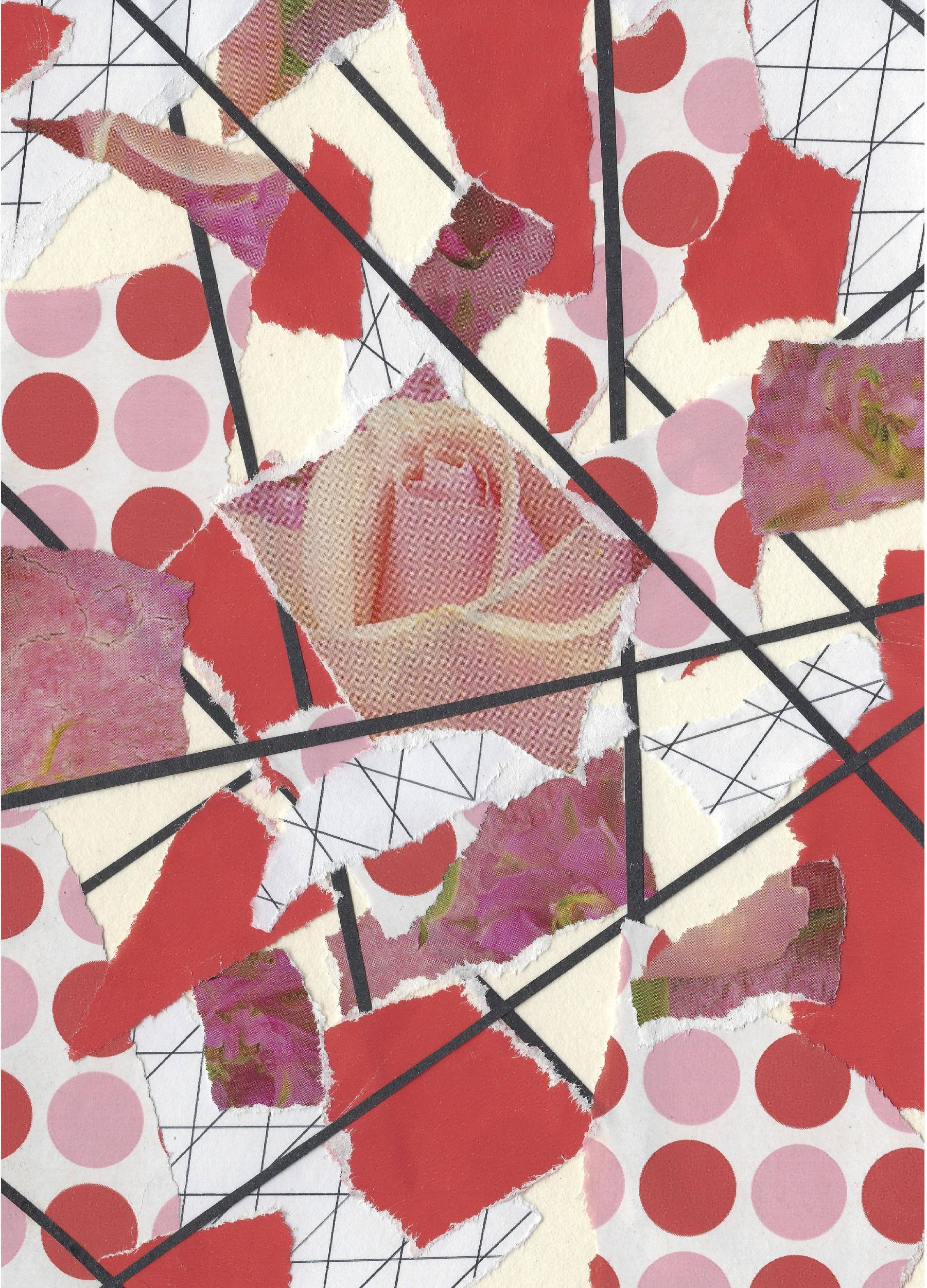 As I've a said, collage is a great way to get my creative brain working again when I've been struggling. When I'm out and about, I'm always looking for items that I can use to create. This collage, and others in my torn paper collage series, were created using a collection of paper off cuts that I got from a local stationary store. This piece mixes texture and pattern with the freedom of abstract expression to create a vibrant bouquet of roses and dots.