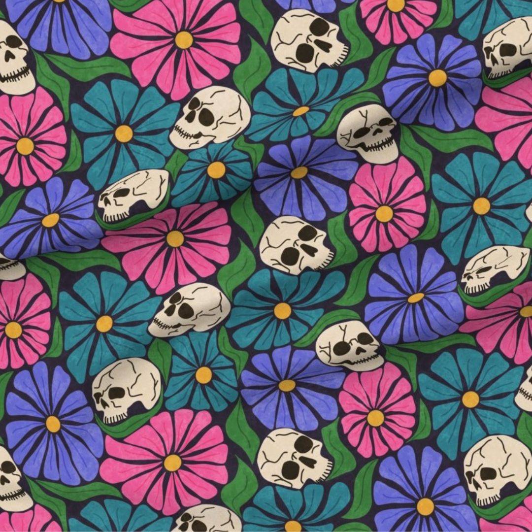 If you're a lover of Fall and Halloween like myself then you are counting down the days until crisp October weather and all things pumpkin. However, who says you have to wait to start celebrating your favorite season! This year Summerween is huge, so to embrace the beauty of summer with the fun, spooky joy of Halloween I have created the "Retro Halloween Florals" Collection with wavy "Flower Market" style florals and Halloween Motifs, perfect for celebrating your favorite season a little early (or year round). Find the Collection on both Spoonflower and Redbubble!